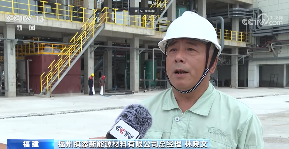2023年8月23日,中央电视台新闻频道《朝闻天下》栏目“实干笃行,大省担当”专题,聚焦福建省太阳能光伏、新能源汽车、锂离子电池产业发展,在众多项目中,选择了福州祺添新能源材料有限公司(简称“福州祺添”)一期项目进行了报道,并对福州祺添总经理林晓文先生进行了采访,采访中林总介绍了福州祺添一期项目的进展情况及未来的宏伟规划。