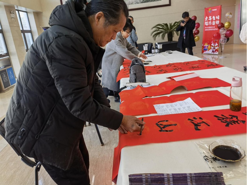 在颁奖典礼结束后,楹联协会的书法家为公司员工书写楹联美句,在场的公司领导和员工也积极踊跃投入到写春联活动中,表达对公司未来发展更好、个人幸福生活的祝福与企盼!