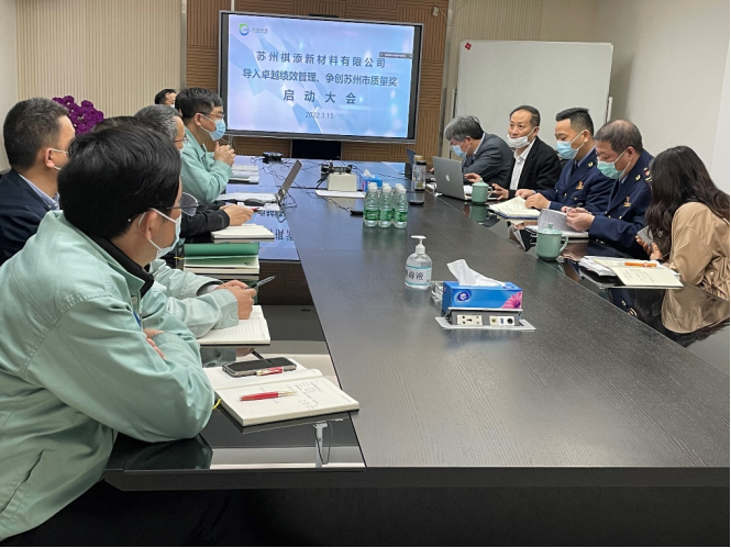 2022年3月15日上午,苏州祺添举行了“导入卓越绩效管理 争创苏州市质量奖”启动大会,常熟市市场监督局和海虞分局的领导、苏质科技咨询服务中心专家参加并现场授课,苏州祺添的中高层管理人员参会,山东祺添、福州祺添的相关人员线上参加了本次启动会。