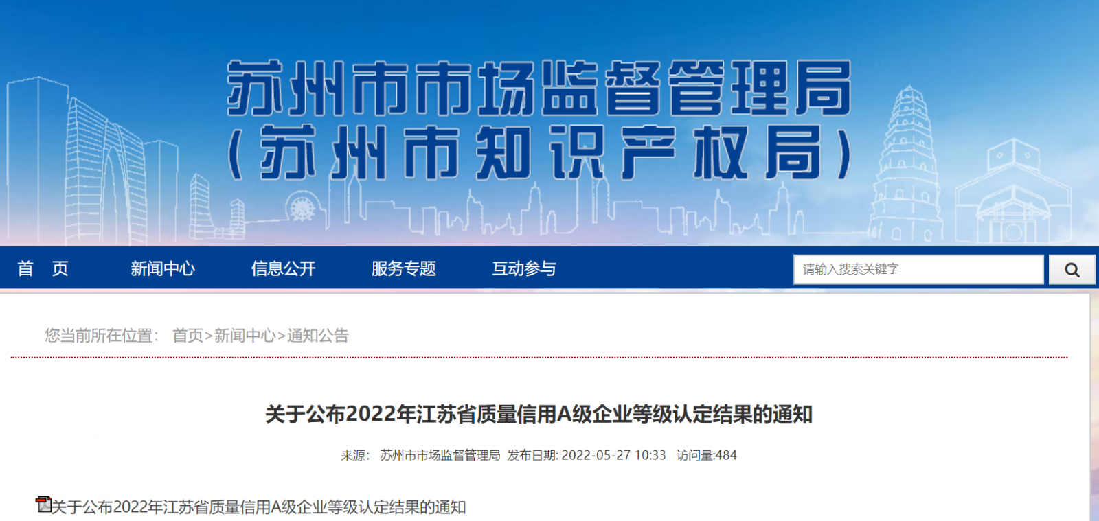 2022年5月27日,苏州市市场监督管理局公布了《2022年江苏省质量信用A级企业》名单,苏州祺添成功入选。
