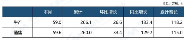 从6月单月数据看,6月新能源乘用车产销分别完成56.3万辆和56.9万辆,同比增长1.4倍和1.3倍;新能源商用车产销分别完成2.7万辆和2.8万辆,同比增长83.5%和88.4%。分动力类型来看,6月纯电动汽车产销分别完成46.6万辆和47.6万辆,同比均增长1.2倍;插电式混合动力汽车产销分别完成12.3万辆和12万辆,同比分别增长1.8倍和1.7倍;燃料电池汽车产销分别完成527辆和455辆,同比分别增长18.7%和67.3%。