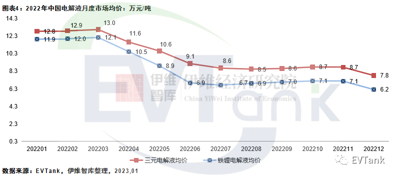 根据EVTank的数据,2022年3月份,电解液的价格达到历史高点13万元/吨后开始回落,2022年12月,国内电解液的市场均价已经回落到最低6万元/吨左右。EVTank表示。2022年,电解液价格的上涨也导致整个电解液行业的产值同比出现大幅度增长,根据《中国锂离子电池电解液行业发展白皮书(2023年)》统计数据,2022年,中国电解液行业产值达到695.0亿元,同比大幅增长98.66%